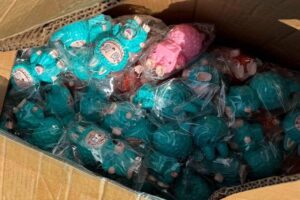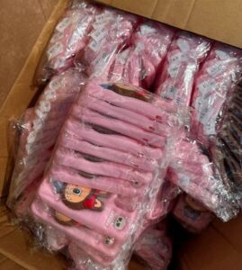 А от 7440 шт. м’яких іграшок, 8120 шт. брелків, 1140 шт. силіконових чохлів та 150 шт. чохлів для навушників, які переміщували на митну територію України з порушенням охоронюваних законом прав інтелектуальної власності, вилучено. Попередня загальна вартість вилученого товару перевищує півмільйона гривень.