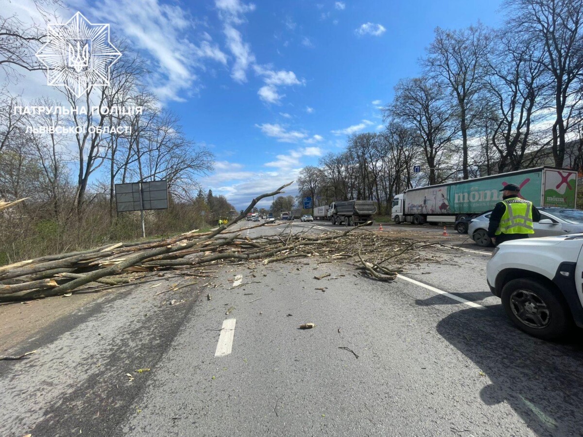 Біля Львова дерево перекрило рух (ФОТО)