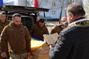 З лампадками, квітами та глибоким сумом громада зустріла полеглого Захисника на Перехресті Героїв. Після короткої панахиди траурна колона рушила до Поминальної каплиці при парафії Зіслання Святого Духа. Дорогою люди ставали на коліна на знак вдячності за жертовність Героя. Пам’ять про його відвагу назавжди залишиться прикладом мужності для всіх поколінь українців.