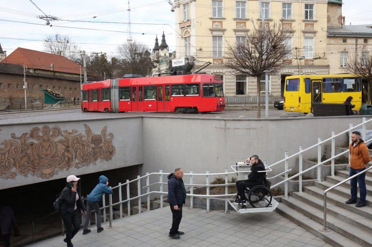 *на фото, до речі, дві важливі події, які трапились у Львові у березні: “червоний” трамвай та перший у Львові підйомник у підземному переході