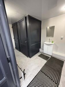 Вбиральня була збудована у 2015 році, тобто 10 років тому. Відтак у ній необхідно було замінити сантехніку, оновити все всередині та забезпечити доступність для осіб з інвалідністю.