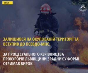 Прокурори в суді довели, що у квітні 2022 року службовець пожежної частини, на відміну від інших колег, не вибув на підконтрольну Україні територію, а добровільно перейшов на бік ворога.
