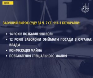 Йому призначено покарання у виді 14 років позбавлення волі з конфіскацією майна. Також заборонено обіймати посади в правоохоронних органах терміном на 12 років та позбавлено спеціального звання відповідно.