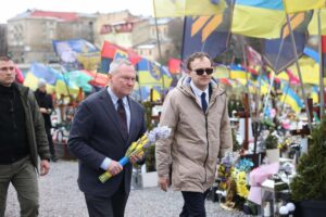 Це було сьогодні. Перший візит Комісара Ради Європи з прав людини Майкла О’Флаерті у Львів. Перша локація у візиті – Личаківське кладовище