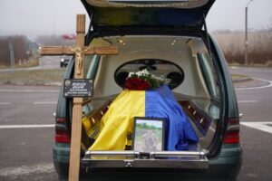 На площі Ринок провели загальноміське прощання за участі рідних, побратимів-нацгвардійців, священнослужителів, керівництва громади та небайдужих мешканців. Присутні спільною молитвою, навколішки, віддали шану воїну, який віддав за рідну країну власне життя.