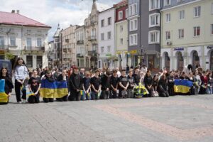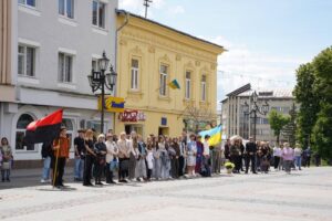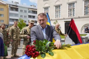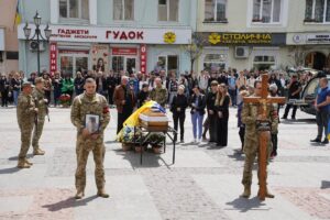 З перехрестя конвой попрямував на площу Ринок, де провели загальноміське прощання з воїном. Щоб вшанувати подвиг Героя на площі зібрались рідні, близькі, молодь, керівництво Дрогобицької громади та небайдужі мешканці – спільною молитвою, схиливши коліно, всі віддали шану Герою, який поклав найцінніше, що мав – власне життя на вівтар свободи рідної землі.