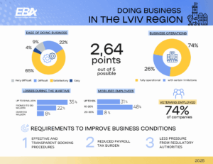 Опитування проводилось серед членських компаній Західноукраїнського офісу Європейської Бізнес Асоціації з 12 до 30 вересня 2025 року. Загальна новина доступна за посиланням.