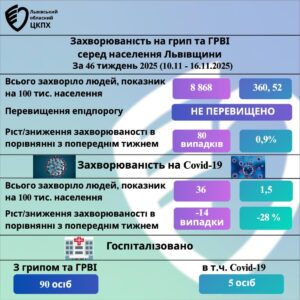 “Для тих хто очікує на грип повідомляю – ще не прийшов! Коронавірусу виявлено 36 випадків. Загальна кількість гострих респіраторних захворювань знизилась за тиждень на 1%.