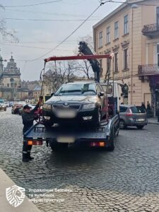 Два автомобілі, які створили перешкоду для руху транспорту на перехресті площі Галицької та вулиці Князя Романа, тимчасово затримані та евакуйовані на арештмайданчик