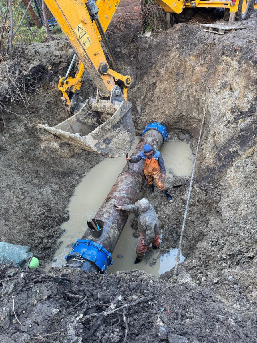 Всю ніч тривали роботи щодо заміни аварійної ділянки труби