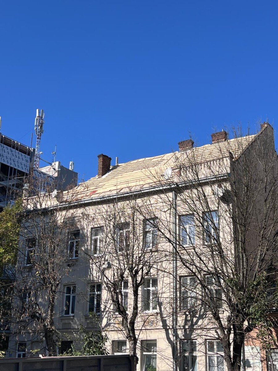 На вул. Стороженка, 10 – робітники теж працюють на покрівлі. Тут міняють крокви та готують основу під покрівлю. Далі вкладатимуть профнастил