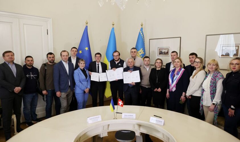 Перший заступник міського голови Львова Андрій Москаленко, Надзвичайний і Повноважний Посол Швейцарської Конфедерації в Україні Фелікс Бауманн та керівник ЛКП «Львівелектротранс» Володимир Ковалів підписали угоду щодо передачі швейцарцями нашому місту 11 низькопідлогових трамваїв.