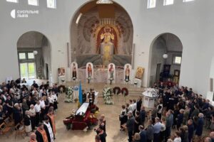 Чин похорону розпочався о 10:30 у храмі Святої Софії-Премудрості Божої на території УКУ. Попрощатися із Ярославом Рущишиним прийшли рідні, друзі, однопартійці та містяни.