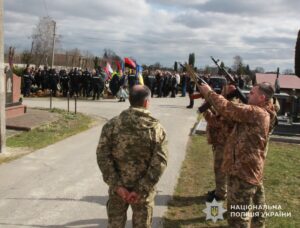 В останню путь правоохоронця проводжали поліцейські Львівщини, керівництво Головного управління Національної поліції у Львівській області, бойові побратими на чолі з заступником начальника управління – начальником відділу проведення спеціальних операцій штурмового полку «Сафарі» підполковником поліції Станіславом Коломійцем, рідні та друзі.