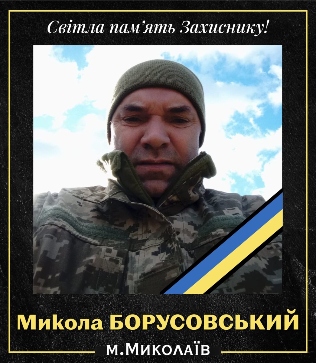 Додому «на щиті» повертається Захисник України Микола Іванович Борусовський (17.12.1972 р.н., із м. Миколаїв).