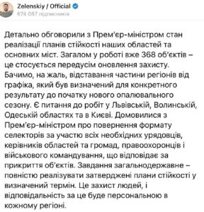 Задля захисту критичної інфраструктури, влада повертає селекторні наради з урядовцями, очільниками регіонів на всіх рівнях, правоохоронцями та військовим командуванням. В роботі вже 368 обʼєктів.