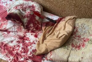 Тіло матері знайшла її 54-річна донька і викликала швидку. У цей час у кімнату увірвався син вбитої і наніс сестрі декілька ударів ножем в обличчя, шию та по руці, яку вона підставила, щоб захиститися. Намагаючись врятуватися, жінка заховалася в сусідки (хрещеної нападника). Через кілька хвилин туди прибігла інша сестра обвинуваченого, 56-річна жінка.