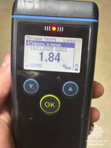 Під час спілкування із громадянином, поліцейські виявили у нього ознаки алкогольного спʼяніння. Перевірка на пристрої Драгер показала результат 1,84 проміле.