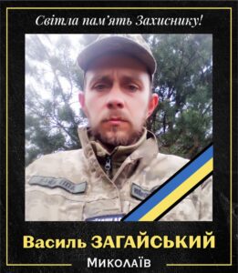 Василь Ярославович ЗАГАЙСЬКИЙ (1989 р.н., із Миколаєва). Загинув у жовтні 2024 року. Нещодавно тіло Захисника вдалося ідентифікувати та визнано загиблим. Він поліг внаслідок скиду боєприпасу з ворожого БпЛА та масивного мінометного обстрілу біля населеного пункту Побєда Покровського району на Донеччинні.