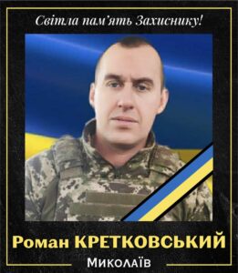Роман Васильович КРЕТКОВСЬКИЙ (1980 р.н., із Миколаєва, родом із Тростянця). Загинув при виконанні бойового завдання біля населеного пункту Кучерів Яр Покровського району на Донеччині.