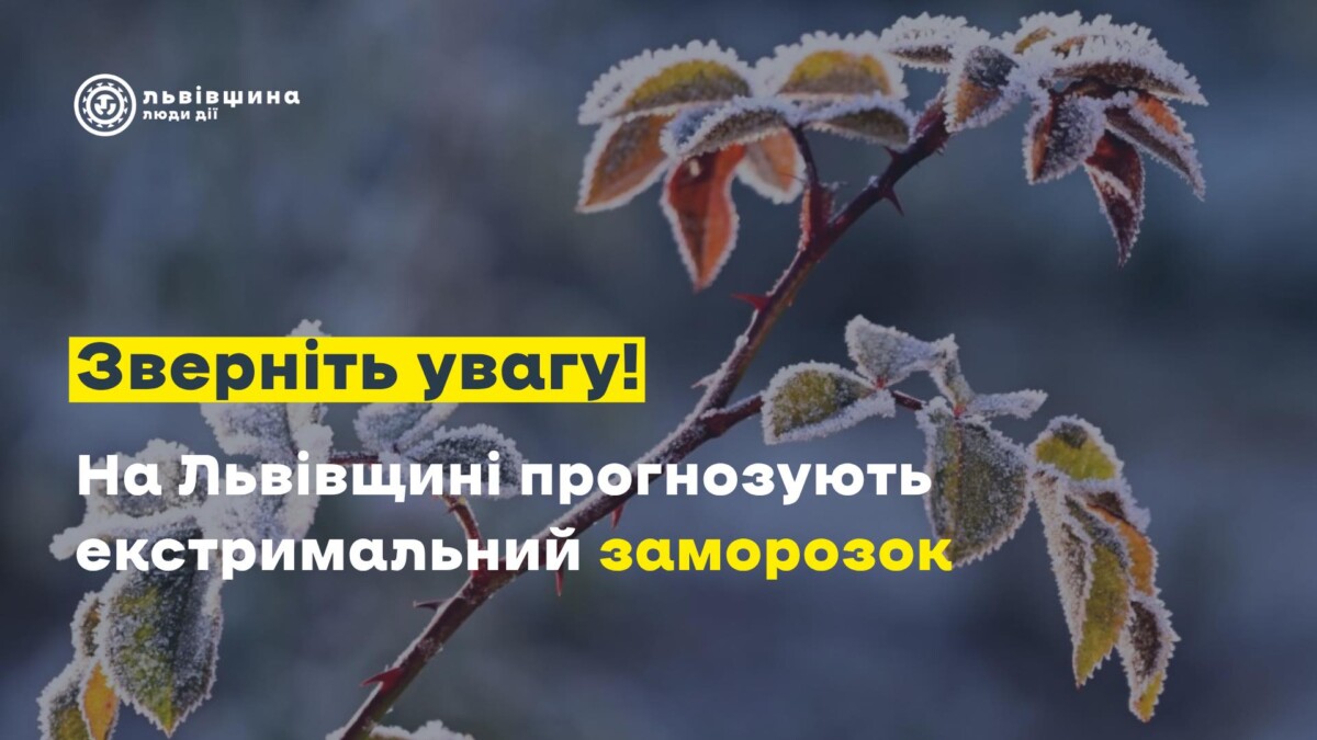 По території області та у Львові, 30 квітня, вночі, прогнозують надзвичайний заморозок 5 – 8° (у місті 5 – 6°).