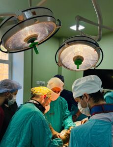 «Під час операції ми провели ревізію колінного суглобу, виключили внутрішньосуглобове пошкодження (меніски та хрестоподібні зв’язки були цілі), при ревізії було виявлено суттєве вдавлення (імпресію) і зміщення частини суглобової поверхні великогомілкової кістки. Виконали відкриту репозицію уламків кістки, дефект заповнили аллотрансплантатами, здійснили внутрішню фіксацію перелому за допомогою анатомічно змодельованої блокуючої стабільної металоконструкції. Попереду на пацієнта чекає тривалий етап реабілітації та подальше видалення конструкції після зрощення перелому», – зазначив ортопед-травматолог Центру Олег Токай.