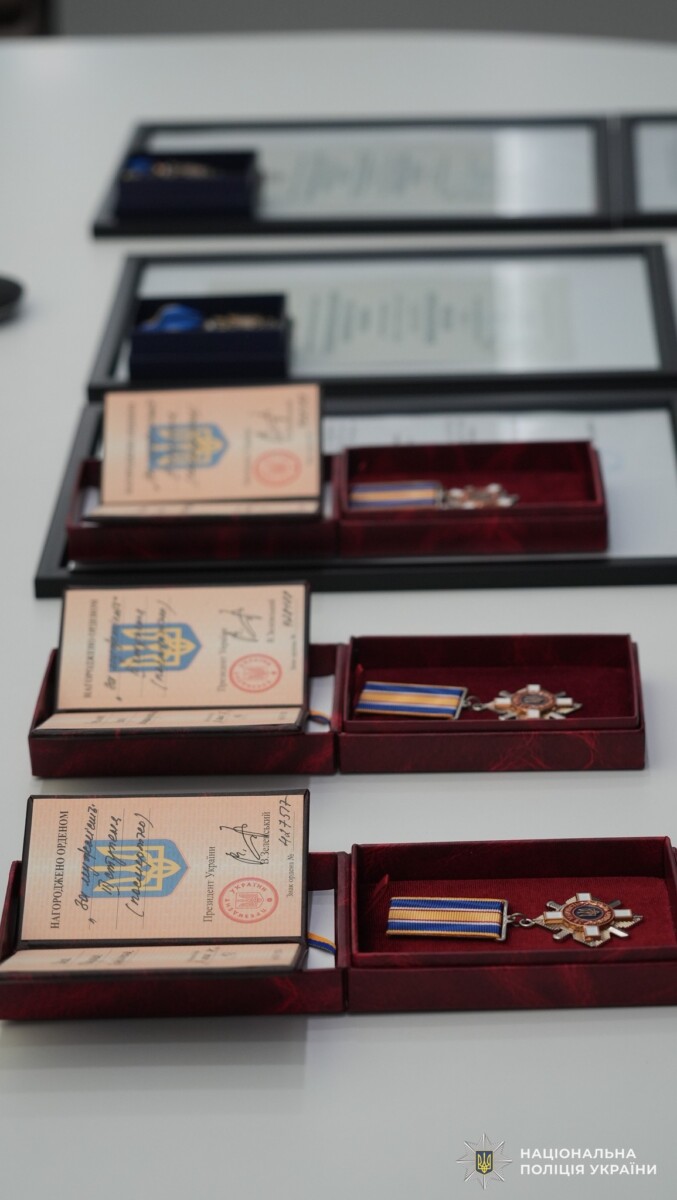 Державними відзнаками загиблих поліцейських посмертно нагородили за особисту мужність і самовіддані дії, виявлені в здійсненні заходів із забезпечення оборони України, захисті безпеки населення та інтересів держави, у зв’язку з широкомасштабною збройною агресією російської федерації проти України.