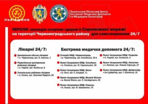 ПРОСИМО НАСЕЛЕННЯ ОБЛАСТІ І ЛЬВОВА тимчасово звертатися за медичною допомогою через самозвернення – за адресами, викладеними нижче, будуть чергувати бригади ЕМД.