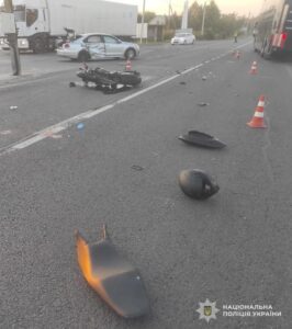 Внаслідок ДТП мотоцикліст отримав тілесні ушкодження та був доставлений до медичного закладу.