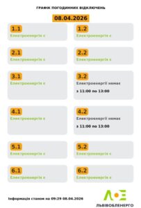 На Львівщині у середу відключатимуть світло Про це пише Львівобленерго. Навігація записів На Львівщині повернули державі військове майноЛьвів’яни можуть виграти відпочинок на Закарпатті