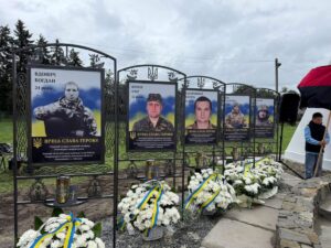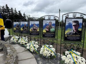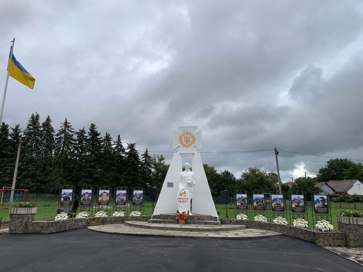 Біля пам’ятного знаку розмістили портрети десяти Захисників, які віддали життя у боротьбі за незалежність України. Наймолодшому з них було лише 24 роки.