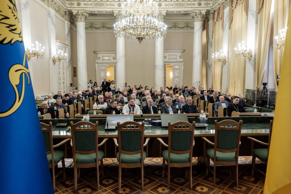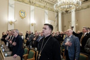 Розпочалося засідання з Державного Гімну України та Гімну Збройних Сил України у виконанні Львівської національної академічної чоловічої хорової капели «Дударик».