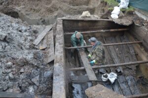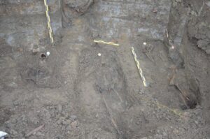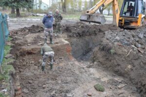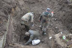 9 квітня пошуковці розпочали розкопки. Фахівцями вже виявлено бетонну крипту, а також фундамент, що може свідчити про ще одне поховання. Станом на сьогодні ексгумовано 32 останки. Роботи тривають.