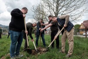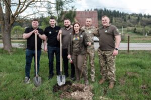 На території школи-гімназії у Тухлі Стрийського району сьогодні ми разом із працівниками обласного лісогосподарського підприємства «Галсільліс» висадили сквер із 230 катальп та метасеквої.