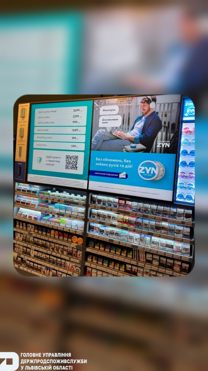 Суб’єкт господарювання, всупереч законодавству, здійснював стимулювання продажу пристроїв для споживання тютюнових виробів без їх згоряння. Це відбувалося шляхом демонстрації на електронному моніторі рекламного заклику: «Щоб купити з гарантією, скануй» із зазначеним QR-кодом.