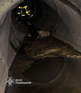Жінка не змогла дістатись до нього самотужки, тож викликала рятувальників. Надзвичайники витягло собаку з пастки й передало його тій же жінці. Вона повезла бідолаху до ветеринара.
