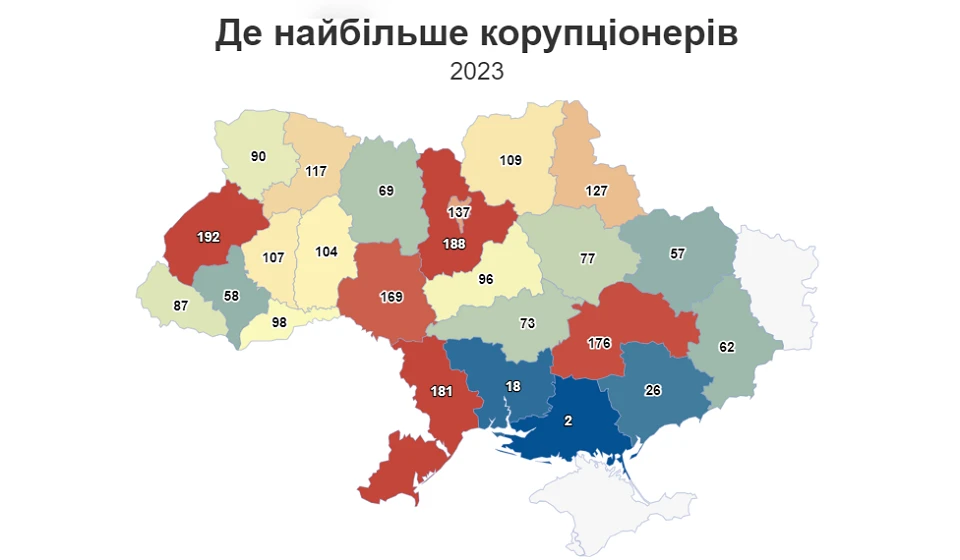 До Реєстру корупціонерів у 2023 році потрапили 2,4 тисячі людей. Львівщина займає перше місце за кількістю корупційних справ в Україні.