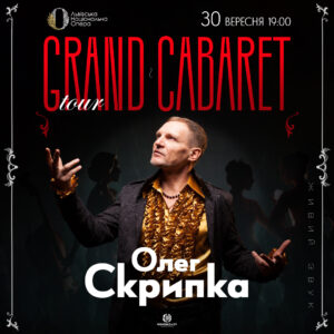 30 вересня на сцені Львівської опери українець із французьким шармом Олег Скрипка та його рок-кабаре не залишать публіці жодного шансу не заспівати разом. «Гуцулка Ксеня», «Tombe la neige», «Dansez» та інші хіти й культові композиції прозвучать так, що мало хто зможе всидіти на місці. Нестримні танці, щирі емоції, драйв і відчуття свята, — усе це незмінні супутники Grand Cabaret від Скрипки.