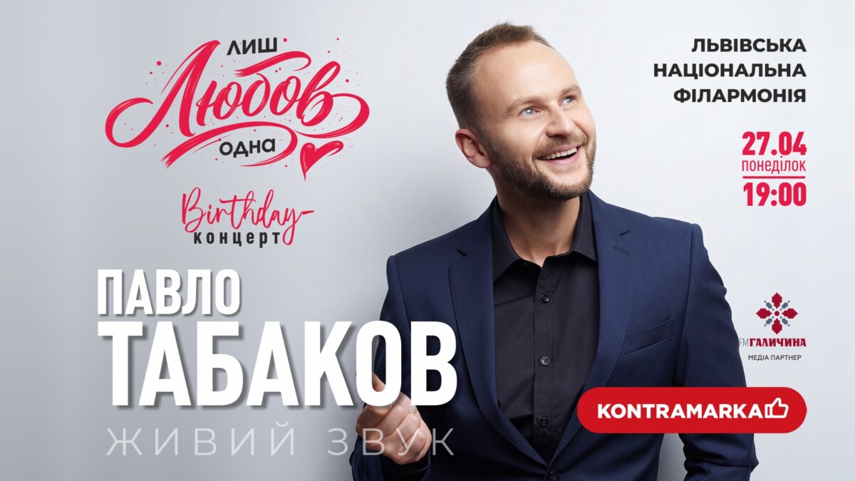 Після кількарічної паузи один із найчуттєвіших українських вокалістів Павло Табаков повертається до особливого формату – святкового birthday-концерту. Уже 27 квітня о 19:00 у Львівській національній філармонії відбудеться музична подія «Лиш любов одна» – вечір, присвячений почуттям, які об’єднують.