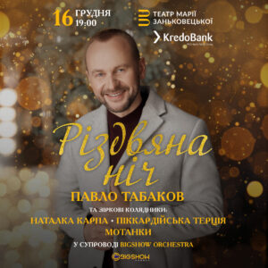 У вівторок, 16 грудня, у Львові, на сцені Національного драматичного театру ім. М. Заньковецької, відбудеться святковий, різдвяно-новорічний концерт Павла Табакова “Різдвяна Ніч”. Початок – о 19:00.