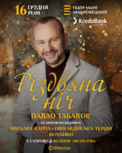 Романтик, улюбленець жінок, переможець телепроєктів «Шанс» та «Голос країни» Павло Табаков готує нову різдвяно-новорічну програму “Різдвяна Ніч”. Авторські колядки та святкові пісні, традиційні коляди у несподіваних обробках, романтичні хіти, – і усе це у супроводі BIGSHOW Orchestra.