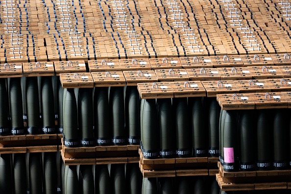 SCRANTON, PA - APRIL 12: 155mm artillery shells that are ready to be shipped are stored at the Scranton Army Ammunition Plant on April 12, 2023 in Scranton, Pennsylvania. The U.S. Army is rapidly moving to scale up the production of the ammunition built at the plant and being supplied to Ukraine. The company has been run by General Dynamics since 2006. They are contracted to produce 11,000 shells per month but in the last few months they have exceeded that number. (Photo by Hannah Beier/Getty Images)