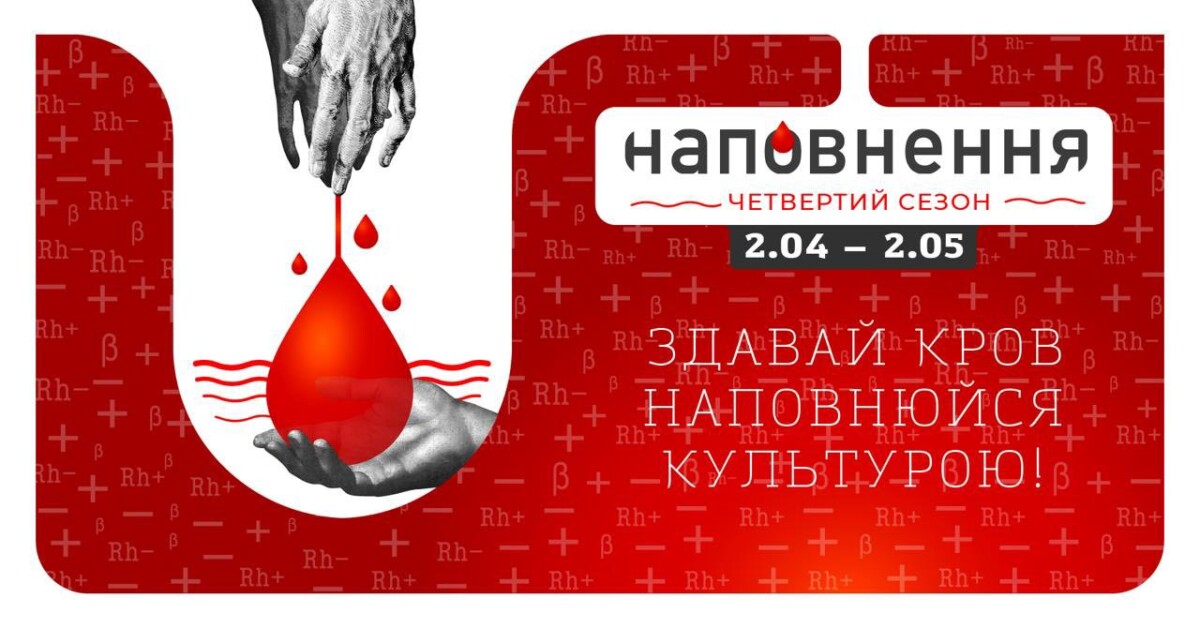 Упродовж місяця — від 2 квітня до 2 травня — культурні інституції Львова та області долучаються до акції «Наповнення»: музеї, театри, галереї, заповідники та філармонія передаватимуть безкоштовні квитки донорам крові. Вже четвертий рік поспіль кожен, хто здасть кров у Львівському обласному центрі служби крові (вул. Пекарська, 65) або в Міському банку крові (вул. Миколайчука, 9), отримає сертифікат на відвідування одного з музеїв області чи квиток до театру.