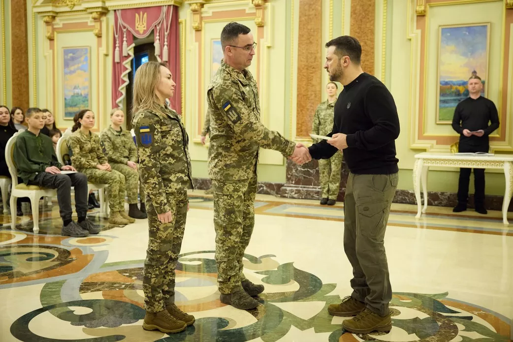 Президент особисто вручив сертифікати на квартири військовослужбовцям із лав Збройних сил України, яким присвоєно звання Героя України: полковнику Сергію Барановському, старшому лейтенанту Андрію Докторенку, капітану Євгенію Пальченку, полковнику Родіону Кулагіну, капітану Ігорю Харченку, полковнику Денису Чаюку, підполковнику Кирилу Перетятьку, полковнику Віктору Сікозі, майору Володимиру Гуцулу та підполковнику Сергію Бурковському. Документи отримав також полковник Національної гвардії України Денис Шлега.