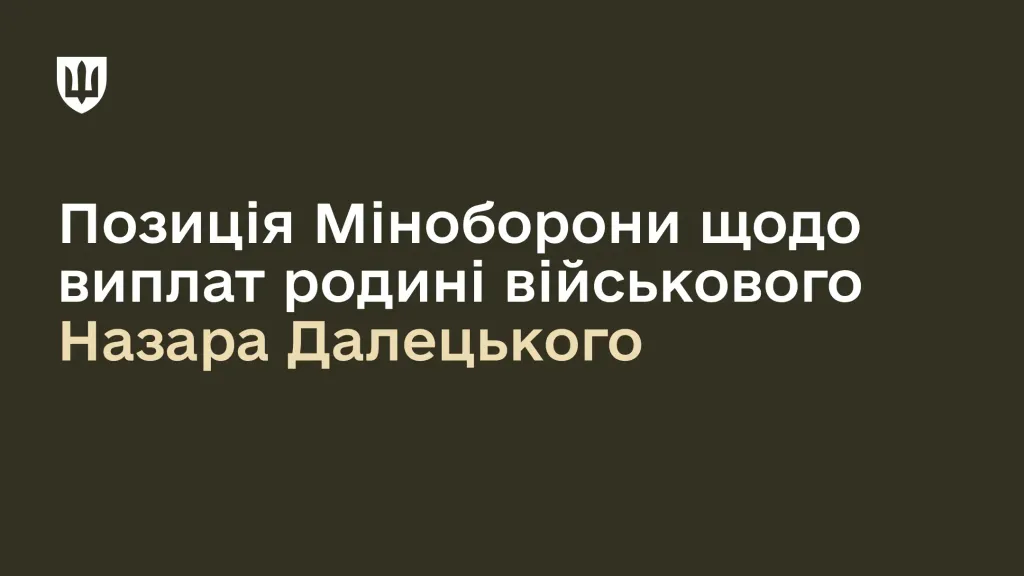 Міністерство оборони не має правових підстав та намірів для перегляду рішення щодо надання коштів родині військовослужбовця Назара Далецького, а також не має наміру спонукати до повернення їх державі.