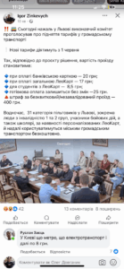 Водночас, 31 категорія пільговиків у Львові, зокрема люди з інвалідністю 1 та 2 груп, учасники бойових дій, а також школярі, за наявності персоналізованих ЛеоКарт, й надалі користуватимуться міським громадським транспортом безкоштовно.
