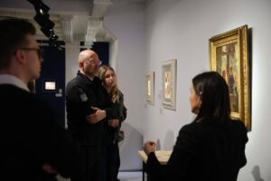 Під час кураторської екскурсії, яку нам провела Христина Береговська, Денис Анатолійович зізнався, що вражений масштабами експозиції. Особливо до душі припали автопортрети Шевченка. Йому також сподобалася ідея з інтерактивними екскурсіями для дітей – щоб закохувати українців у мистецтво змалечку.