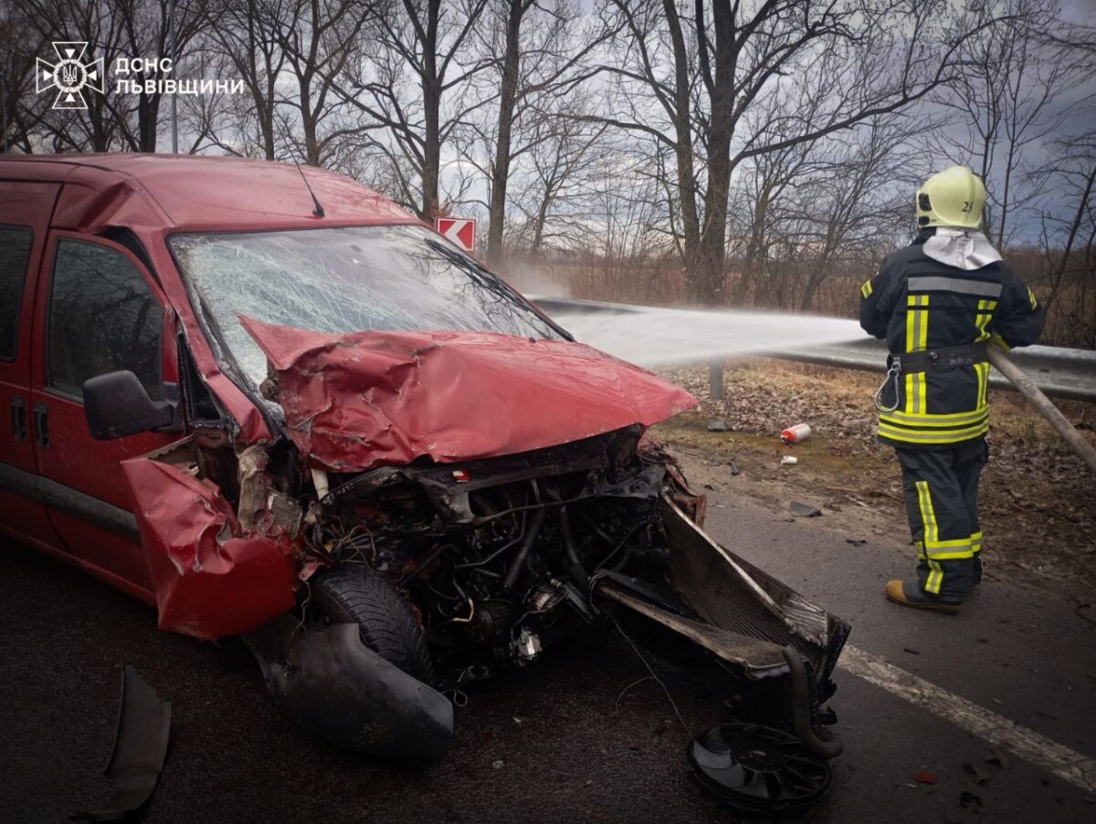 Вогнеборці оперативно прибули на місце події та ліквідували пожежу, відключили акумуляторну батарею автомобіля «Citroen Jumpy» та змили дорожнє покриття від паливно-мастильних матеріалів.