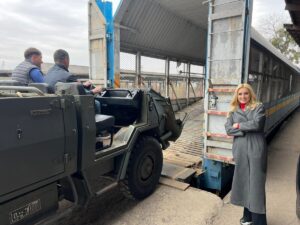 ««Передали автівку для Збройних сил України бійцям 128-ї бригади «Дике поле». Оскільки це військова, важка техніка, найкращим способом доставки став потяг.