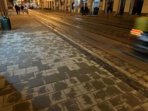У Галицькому районі триває облаштування рівного хідника та доступних входів до закладів на відрізку від вул. Дорошенка, 12 до перехрестя з вул. Словацького. На фото перший готовий шмат робіт.